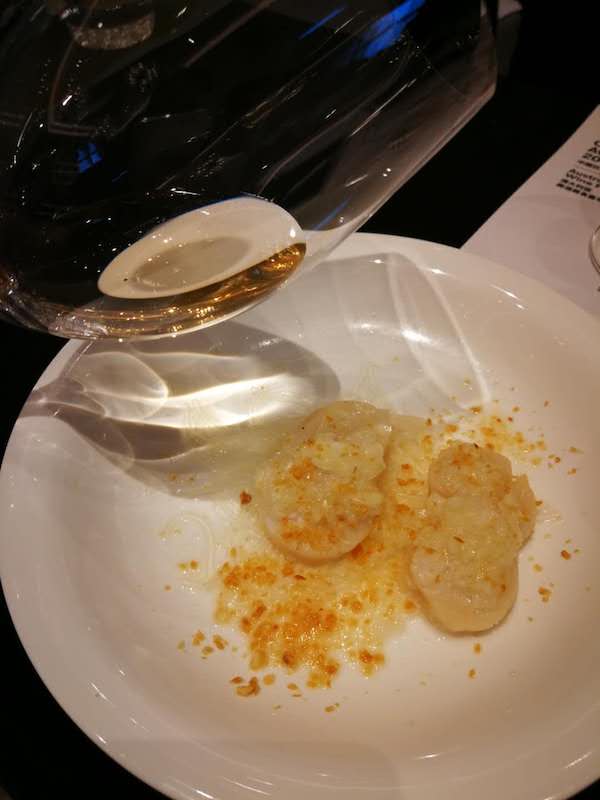 “粵菜本身不是辣咸濃的菜式,選酒的時(shí)候要特別注意,最好不要選擇會(huì)壓住菜肴本身的風(fēng)味的酒款,”趙鳳儀說。對(duì)于同一款菜肴,她給出的酒款推薦是來自獵人谷的賽美蓉,這支經(jīng)過一定時(shí)間陳年的酒款有著漂亮的礦物質(zhì)風(fēng)味,但也不失果味,與蒸帶子本身的海洋質(zhì)感形成了良好的呼應(yīng)。
